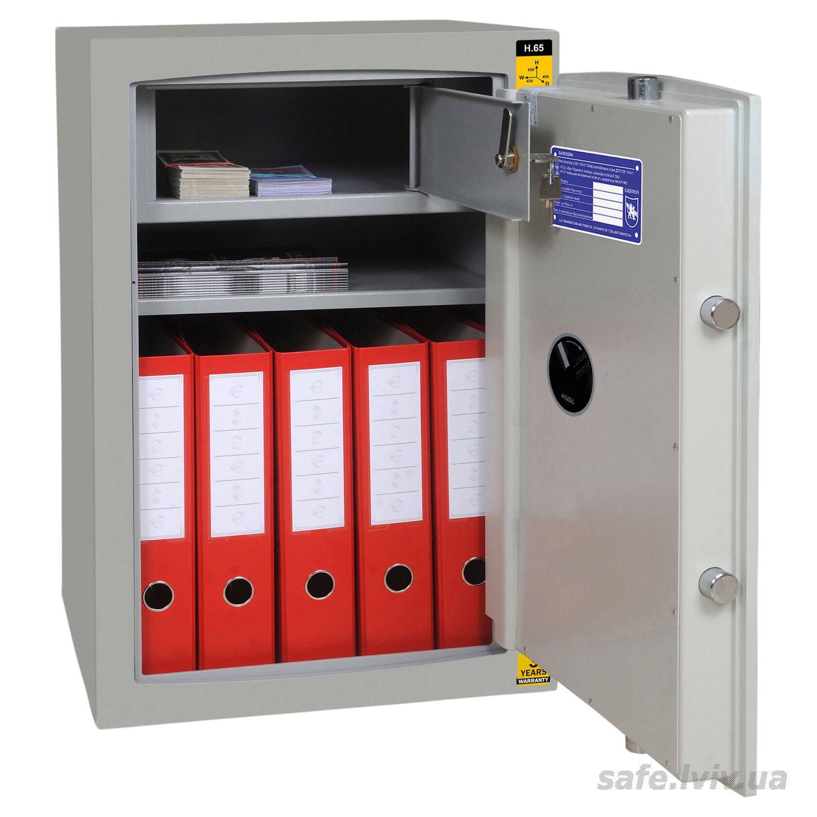 Griffon H.65.K.C це сертифікований зламостійкий сейф клас I за EN 1143-1 та без вогнестійкості, призначений для зберігання грошей, документів, прикрас і цінностей у домі або офісі. Зламостійкість забезпечує конструкція корпусу 25 мм (сталь - зламостійкий бетон - сталь), дверей 14 мм (сталь), ригельна система тристороння, 4 ригелі Ø 25 мм та замок ключовий STUV (Німеччина) VdS Class 1 (A), кодовий механічний La GARD (США) VdS Class 1 (A). Рекомендовані ліміти зберігання - до 2000 мінімальних зарплат для особистого користування та до 1000 для комерційного.