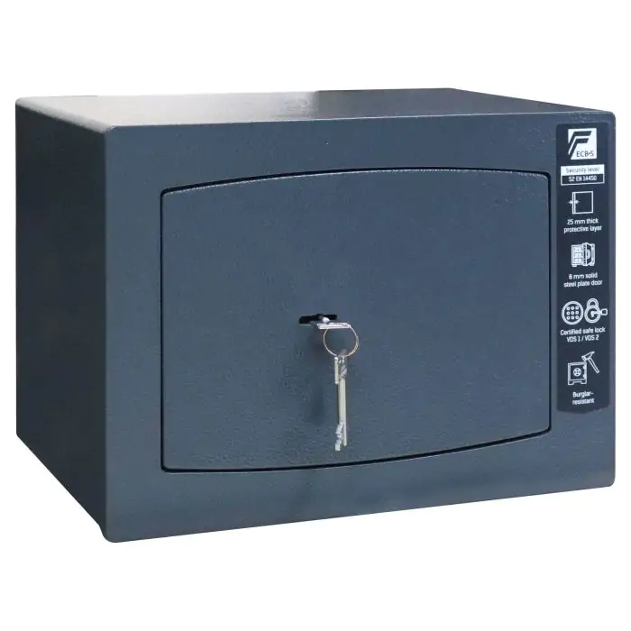 Griffon HL.26.K це сертифікований зламостійкий сейф клас S2 за EN 14450, призначений для надійного зберігання грошей, документів і коштовностей у домі чи офісі. Зламостійкість забезпечує конструкція корпусу 24.5 мм (сталь - без заповнення - сталь), дверей 12 мм (сталь), ригельна система тристороння, 4 ригелі Ø 25 мм та замок - ключовий STUV (Німеччина) VdS Class 1 (A). Рекомендовані ліміти зберігання - до 2.4 млн грн для особистого користування.