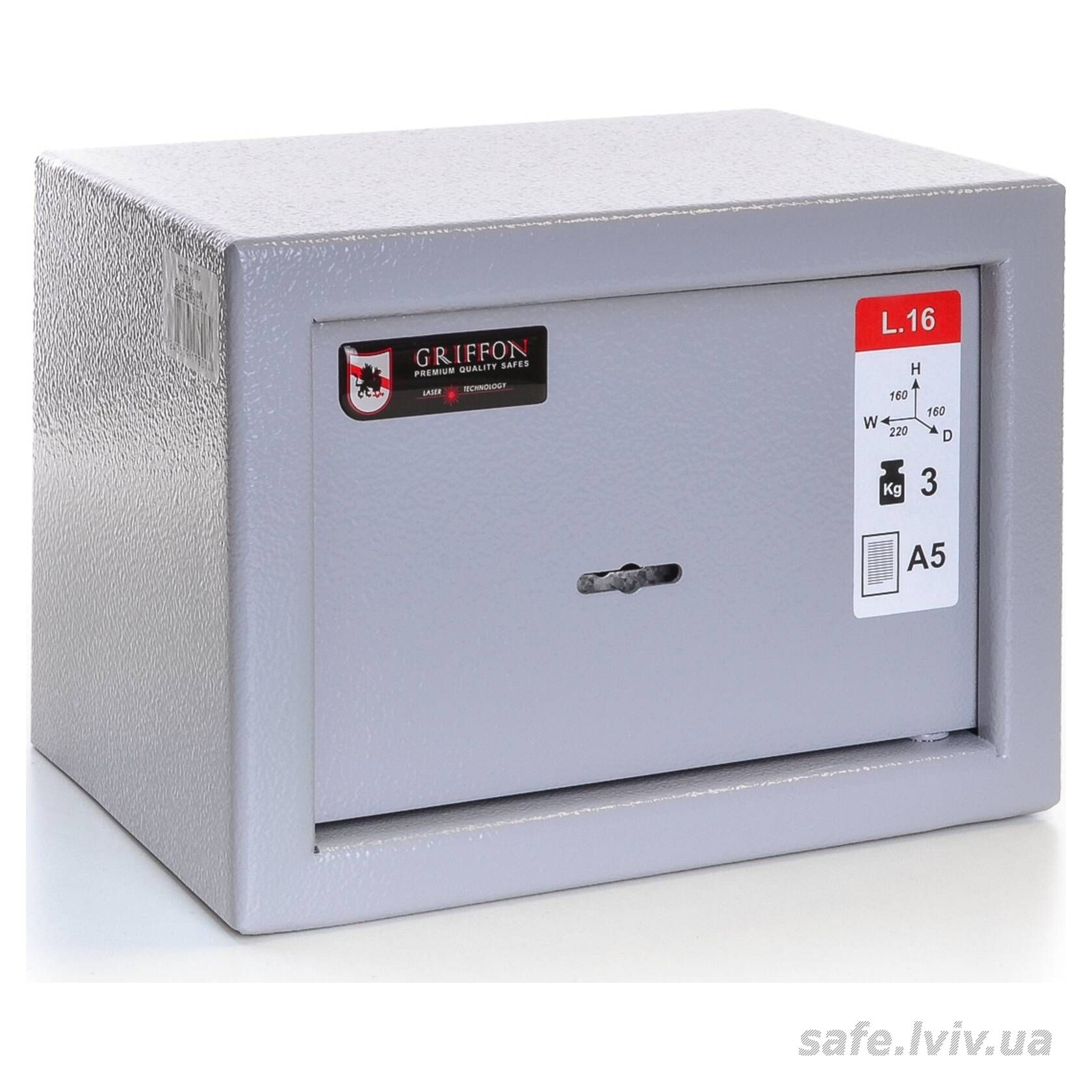 Griffon L.16.K це бюджетний сейф меблевий, для дому, призначений для зберігання документів, паспортів, невеликих сум грошей і пістолета вдома або в офісі. Конструкція корпусу 1.5 мм (сталь) і дверей 2 мм (сталь), ригельна система одностороння, 2 ригелі Ø 16 мм. Замок - ключовий SK 106/4 (Україна).