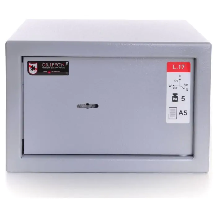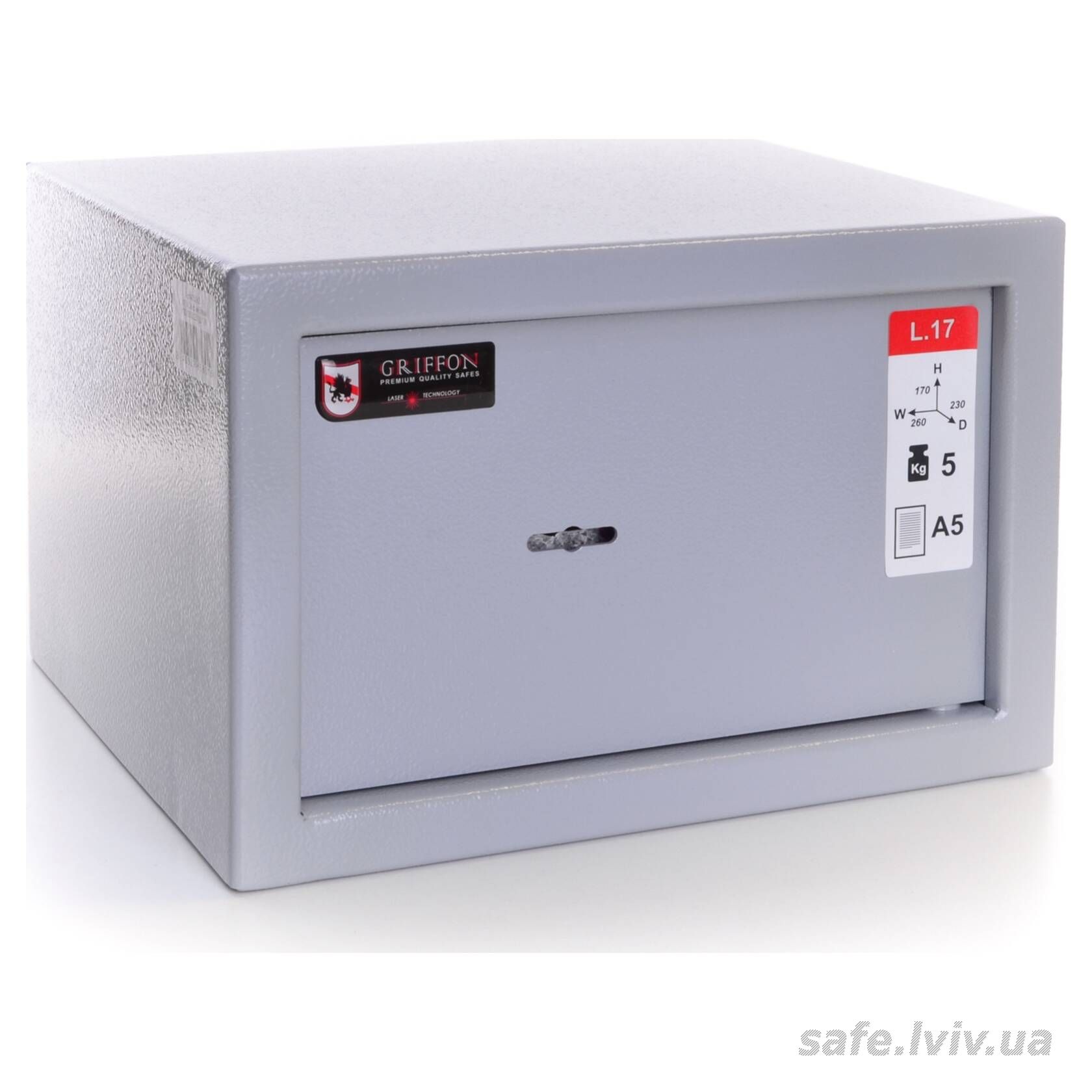 Griffon L.17.K це бюджетний сейф меблевий, для дому, призначений для зберігання документів, паспортів, невеликих сум грошей і пістолета вдома або в офісі. Конструкція корпусу 1.5 мм (сталь) і дверей 2 мм (сталь), ригельна система одностороння, 2 ригелі Ø 16 мм. Замок - ключовий SK 106/4 (Україна).