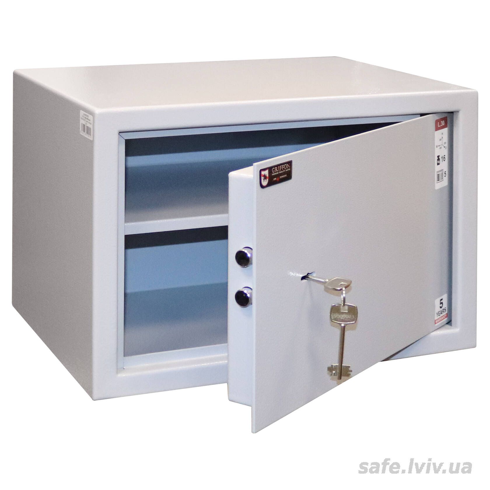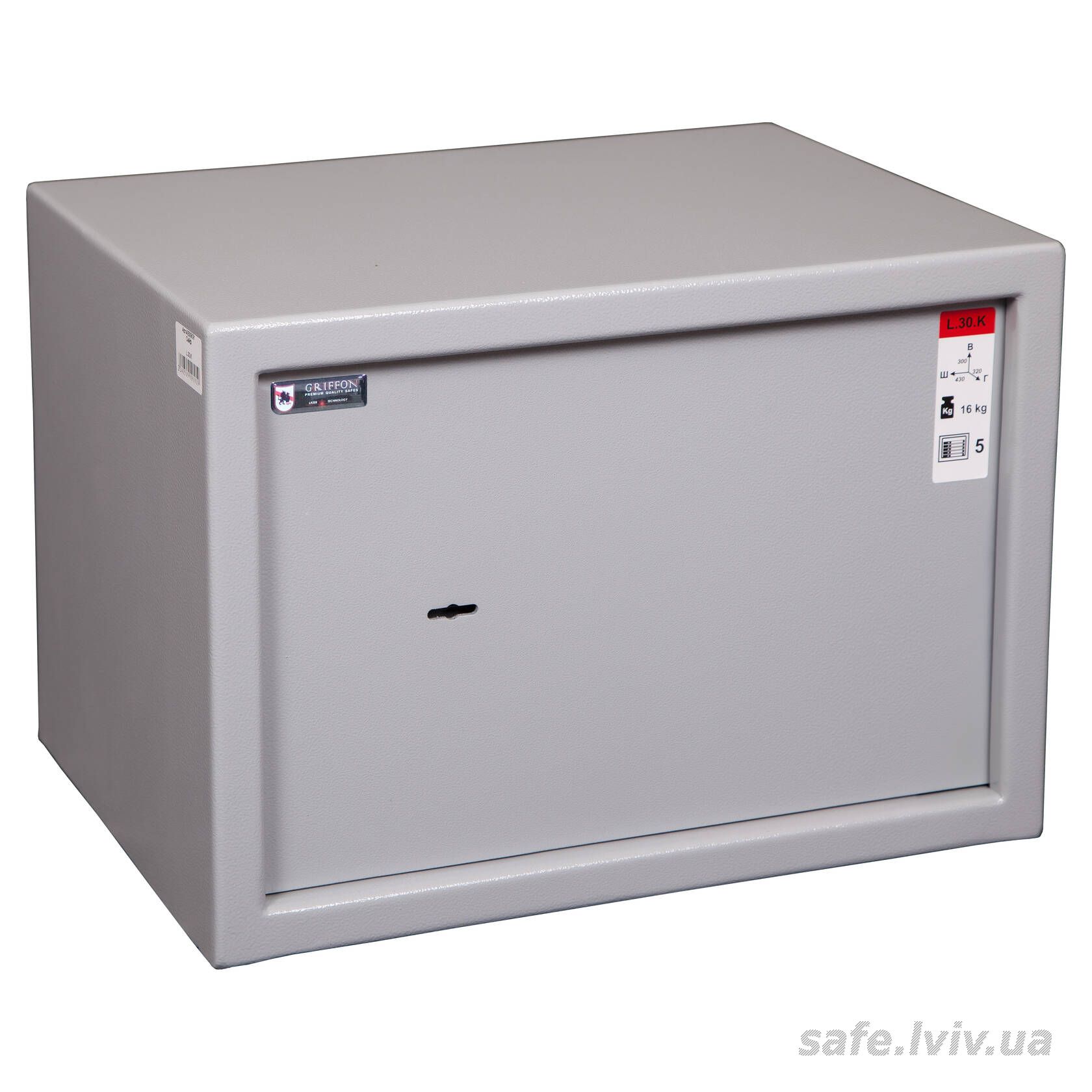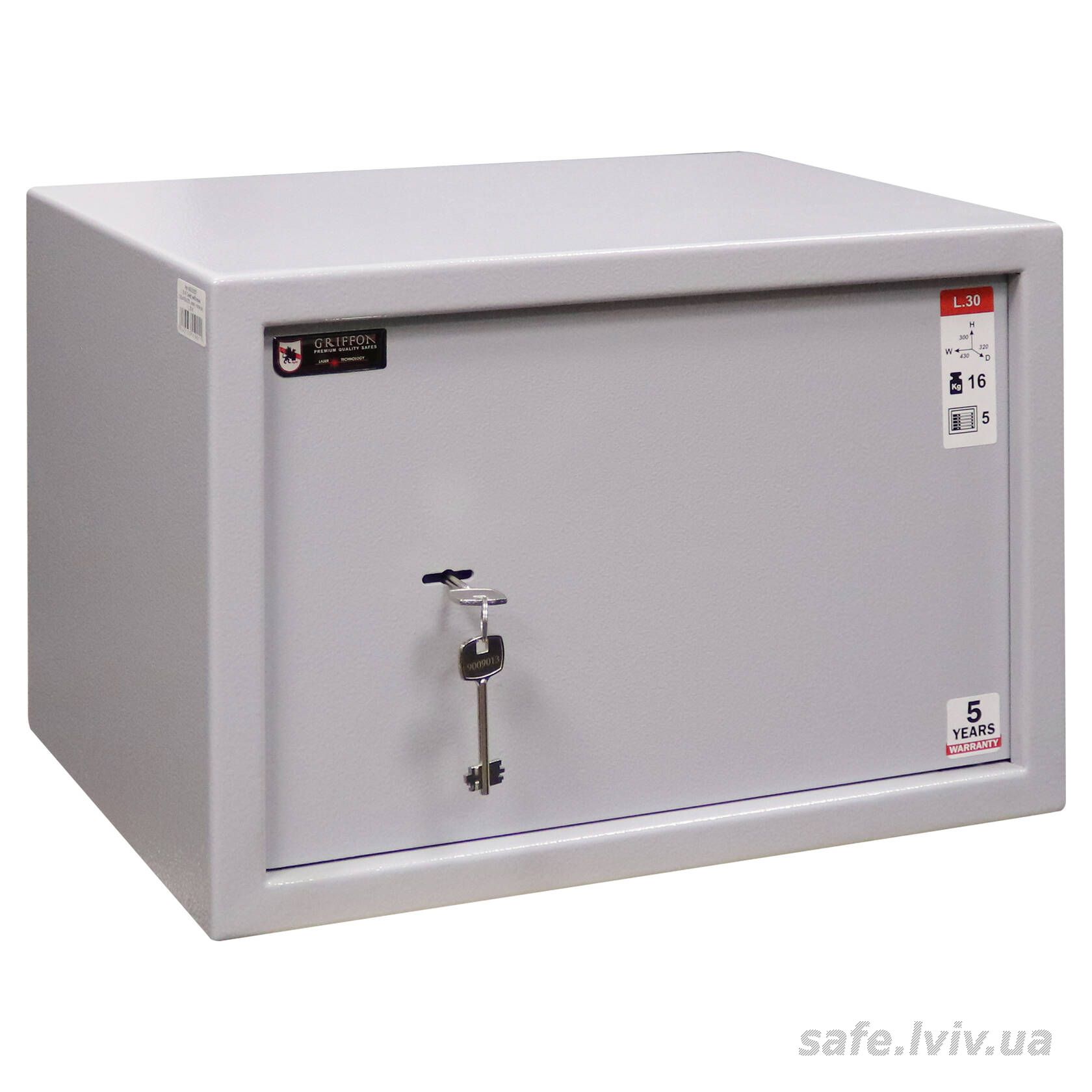 Griffon L.30.K це бюджетний сейф меблевий, для дому, призначений для зберігання документів, паспортів, невеликих сум грошей і пістолета вдома або в офісі. Конструкція корпусу 2 мм (сталь) і дверей 3 мм (сталь), ригельна система одностороння, 2 ригелі Ø 16 мм. Замок - ключовий SK 106/4 (Україна).