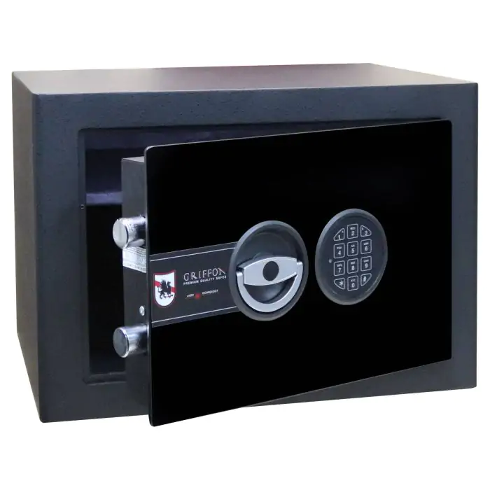 Griffon M.30.E Black · Сейф меблевий для дому класу опору S1 - це сейф зі зламостійкістю клас S1 за EN 14450, призначений для надійного зберігання таких речей, як документи А4, ноутбук, папки А4, а також грошей до 800 тис грн. Зламостійкість забезпечує конструкція корпусу 4 мм (сталь), дверей 4 мм (сталь), ригельна система одностороння, 2 ригелі Ø 25 мм та замок - електронний M-LOCKS (Нідерланди) VdS Class 2 (B).