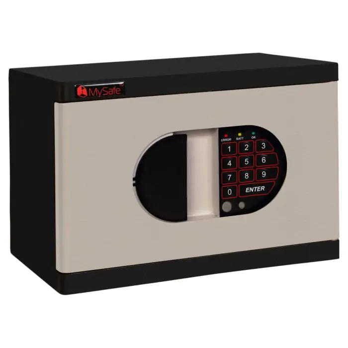 MySafe MS.17.E Cream це компактний меблевий сейф, для зберігання документів чи невеликих сум грошей вдома, в офісі або у вантажному транспорті. Базовий захист забезпечує конструкція 2 мм (сталь), ригельна система одностороння, 2 ригелі Ø 25 мм та замок - кодовий електронний MySafe (Україна). Передбачені анкерні вузли для кріплення до підлоги та стіни. Стандартні кольори - комбінований кремово-білий/чорний-мат RAL 9001/9005.