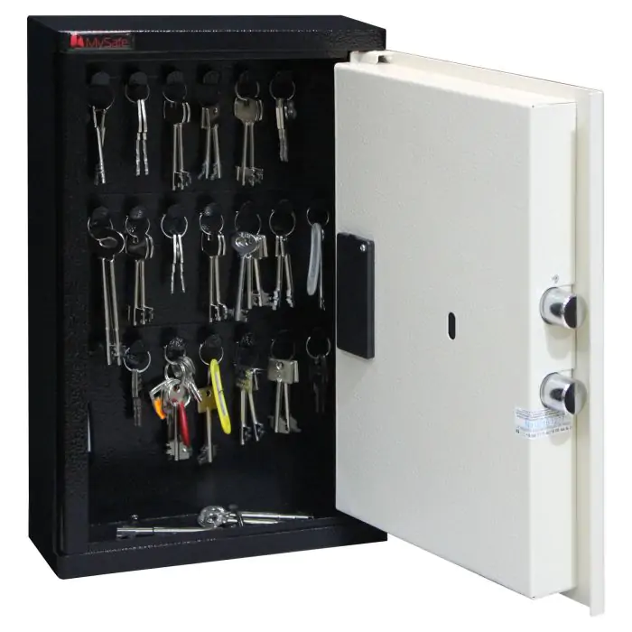 MySafe MSK.40.E Cream це сейф-ключниця, призначений для впорядкованого зберігання ключів у домі та бізнесі. Конструкція корпусу , ригельна система , замок - кодовий електронний MySafe (Україна). Зламостійкість - базовий рівень безпеки. Вогнестійкість - без вогнестійкості. Сейф вміщає - 24 комплекти ключів. Колір - комбінований кремово-білий/чорний-мат RAL 9001/9005.