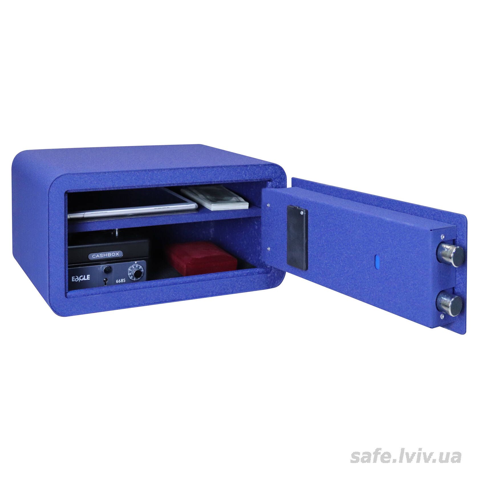 MySafe MSR.20.E Blue це меблевий сейф, призначений для зберігання документів і невеликих сум грошей у квартирі чи будинку. Конструкція корпусу 2 мм (сталь) і дверей 4 мм (сталь), ригельна система одностороння, 2 ригелі Ø 25 мм та замок кодовий електронний MySafe (Україна) забезпечують контрольований доступ. Дизайн із заокругленими кутами, колір темно-синій.