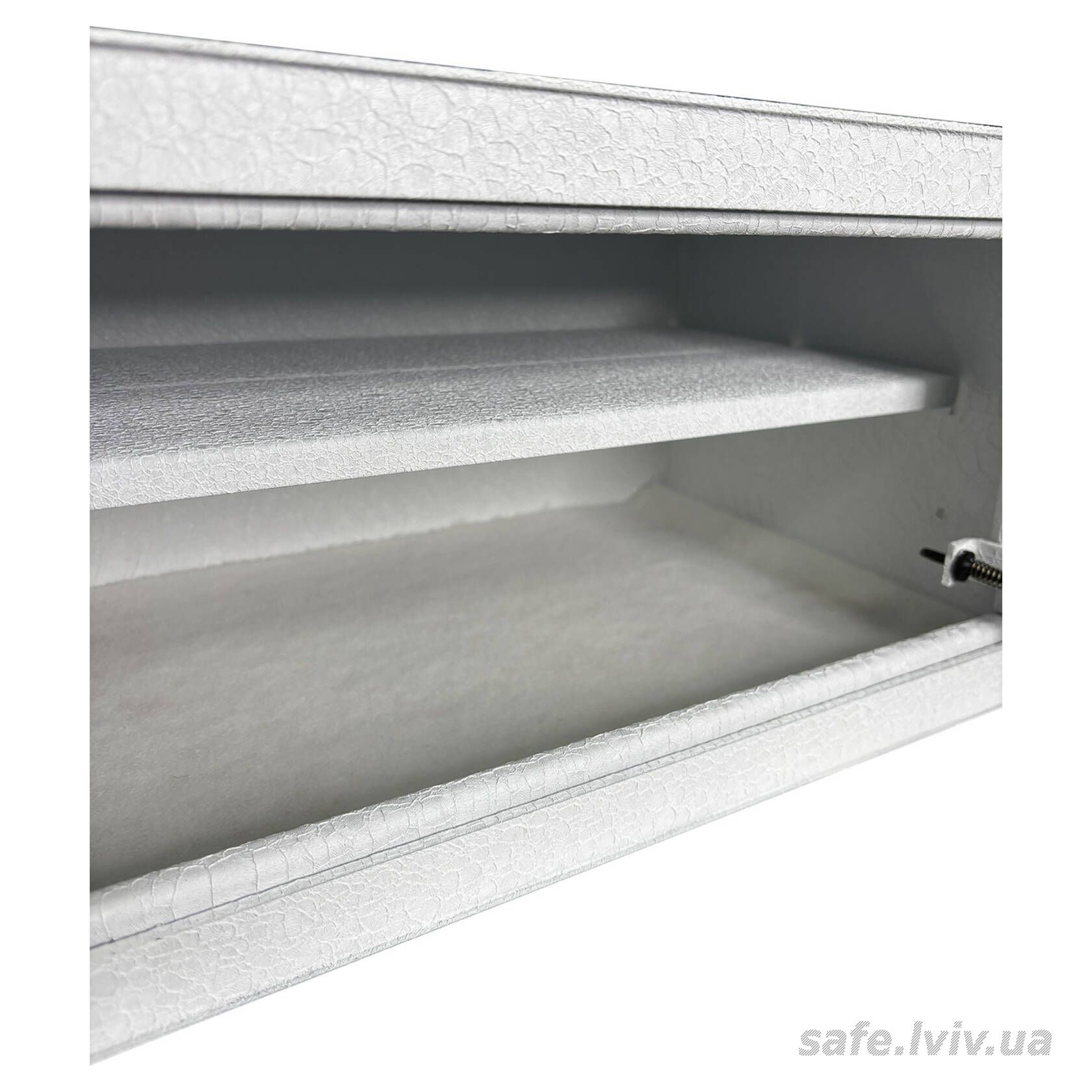 MySafe MSR.20.FP White це меблевий сейф, призначений для зберігання документів і невеликих сум грошей у квартирі чи будинку. Конструкція корпусу 2 мм (сталь) і дверей 4 мм (сталь), ригельна система одностороння, 2 ригелі Ø 25 мм та замок біометричний GRIFFON.FP.LIGHT забезпечують контрольований доступ. Дизайн із заокругленими кутами, колір білий.
