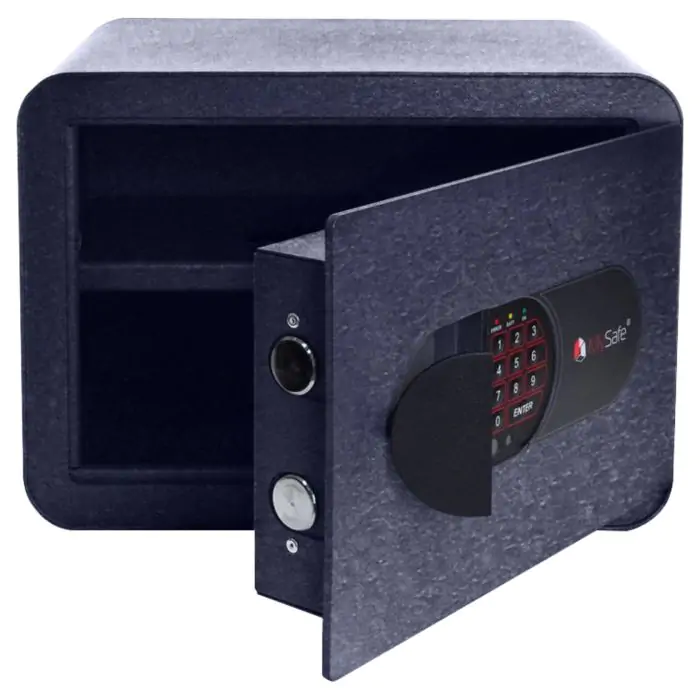 MySafe MSR.25.E це меблевий сейф, призначений для зберігання документів і невеликих сум грошей у квартирі чи будинку. Конструкція корпусу 2 мм (сталь) і дверей 4 мм (сталь), ригельна система одностороння, 2 ригелі Ø 25 мм та замок кодовий електронний MySafe (Україна) забезпечують контрольований доступ. Дизайн із заокругленими кутами, колір графітовий.