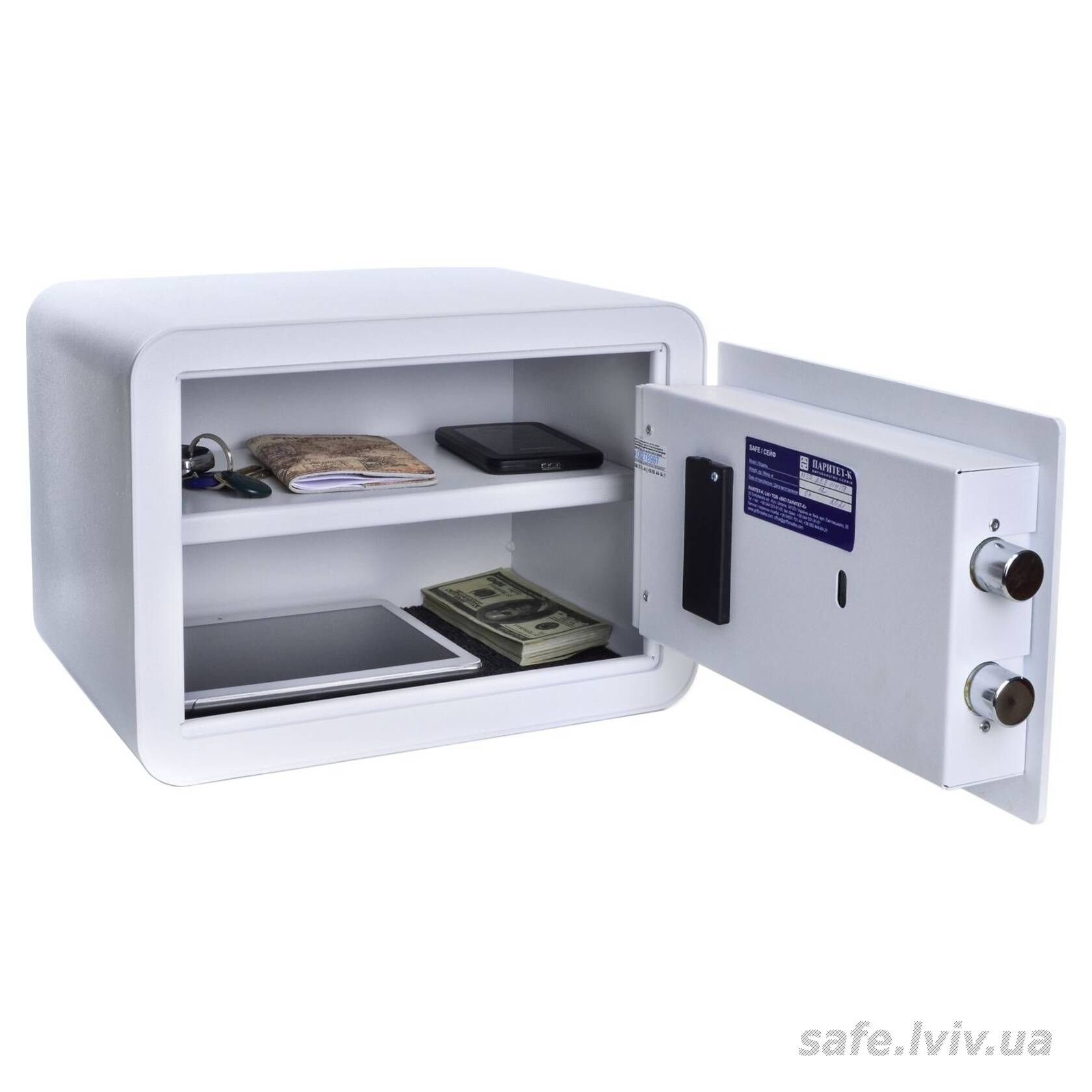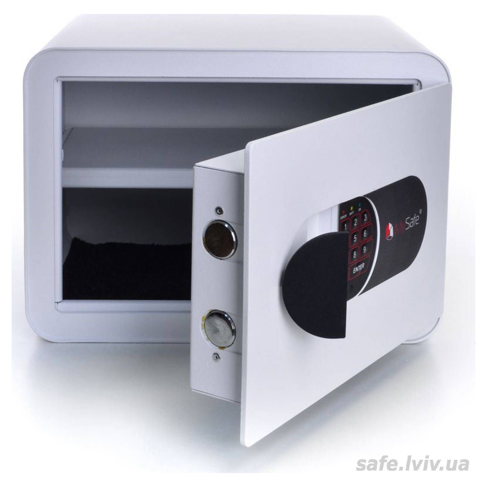 MySafe MSR.25.E White це меблевий сейф, призначений для зберігання документів і невеликих сум грошей у квартирі чи будинку. Конструкція корпусу 2 мм (сталь) і дверей 4 мм (сталь), ригельна система одностороння, 2 ригелі Ø 25 мм та замок кодовий електронний MySafe (Україна) забезпечують контрольований доступ. Дизайн із заокругленими кутами, колір білий.