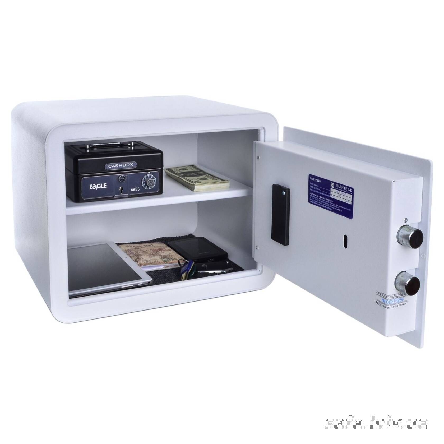 MySafe MSR.30.E White це меблевий сейф, призначений для зберігання документів і невеликих сум грошей у квартирі чи будинку. Конструкція корпусу 2 мм (сталь) і дверей 4 мм (сталь), ригельна система одностороння, 2 ригелі Ø 25 мм та замок кодовий електронний MySafe (Україна) забезпечують контрольований доступ. Дизайн із заокругленими кутами, колір білий.