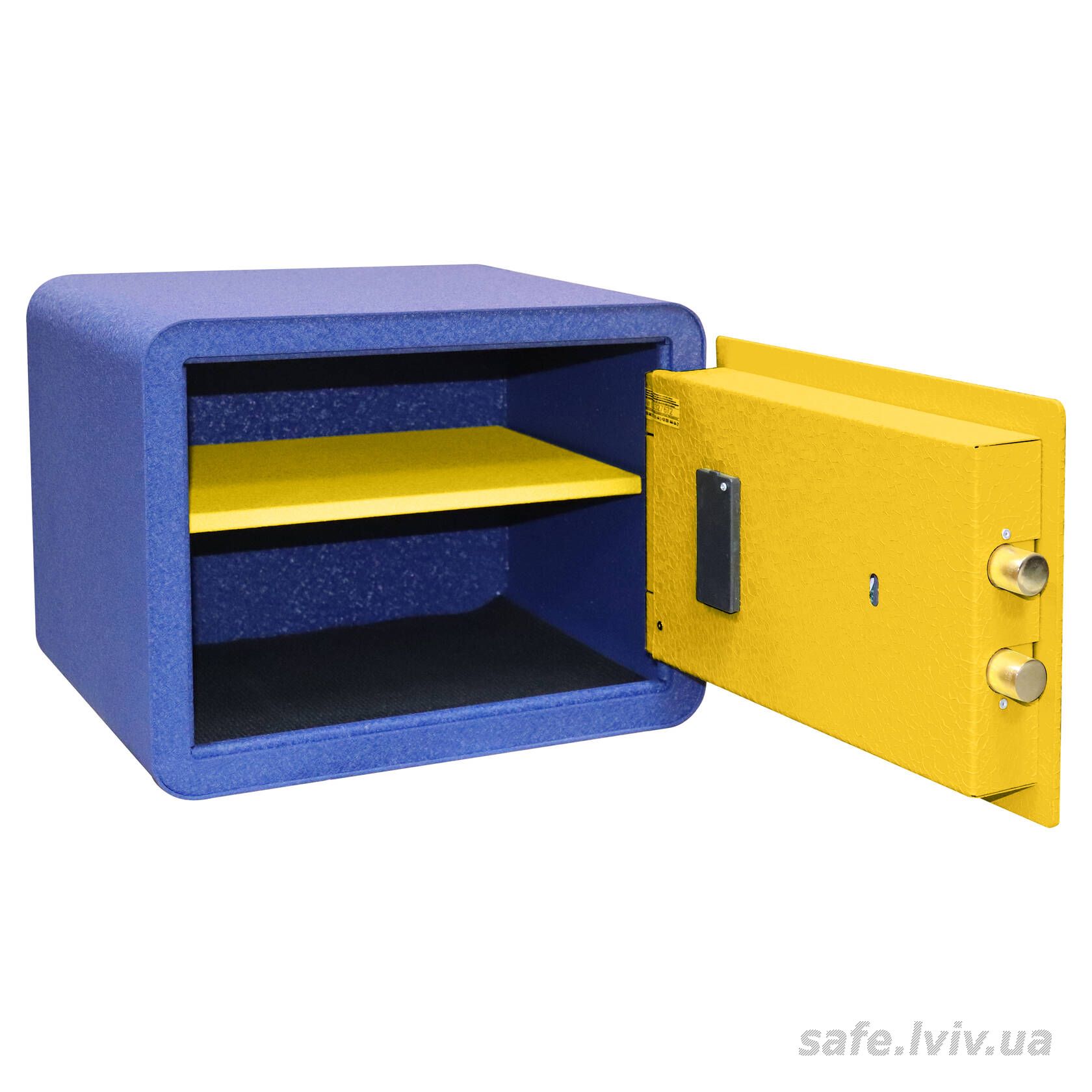 MySafe MSR.30.E Yellow-Blue це меблевий сейф, призначений для зберігання документів і невеликих сум грошей у квартирі чи будинку. Конструкція корпусу 2 мм (сталь) і дверей 4 мм (сталь), ригельна система одностороння, 2 ригелі Ø 25 мм та замок кодовий електронний MySafe (Україна) забезпечують контрольований доступ. Дизайн із заокругленими кутами, колір жовто-блакитний.