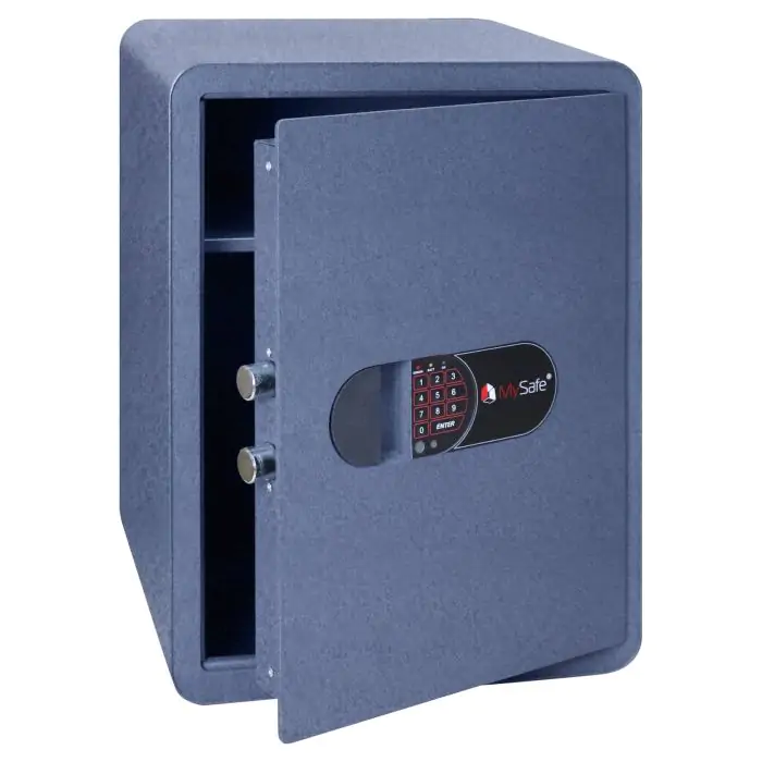 MySafe MSR.50.E це меблевий сейф, призначений для зберігання документів і невеликих сум грошей у квартирі чи будинку. Конструкція корпусу 2 мм (сталь) і дверей 4 мм (сталь), ригельна система одностороння, 2 ригелі Ø 25 мм та замок кодовий електронний MySafe (Україна) забезпечують контрольований доступ. Дизайн із заокругленими кутами, колір графітовий.