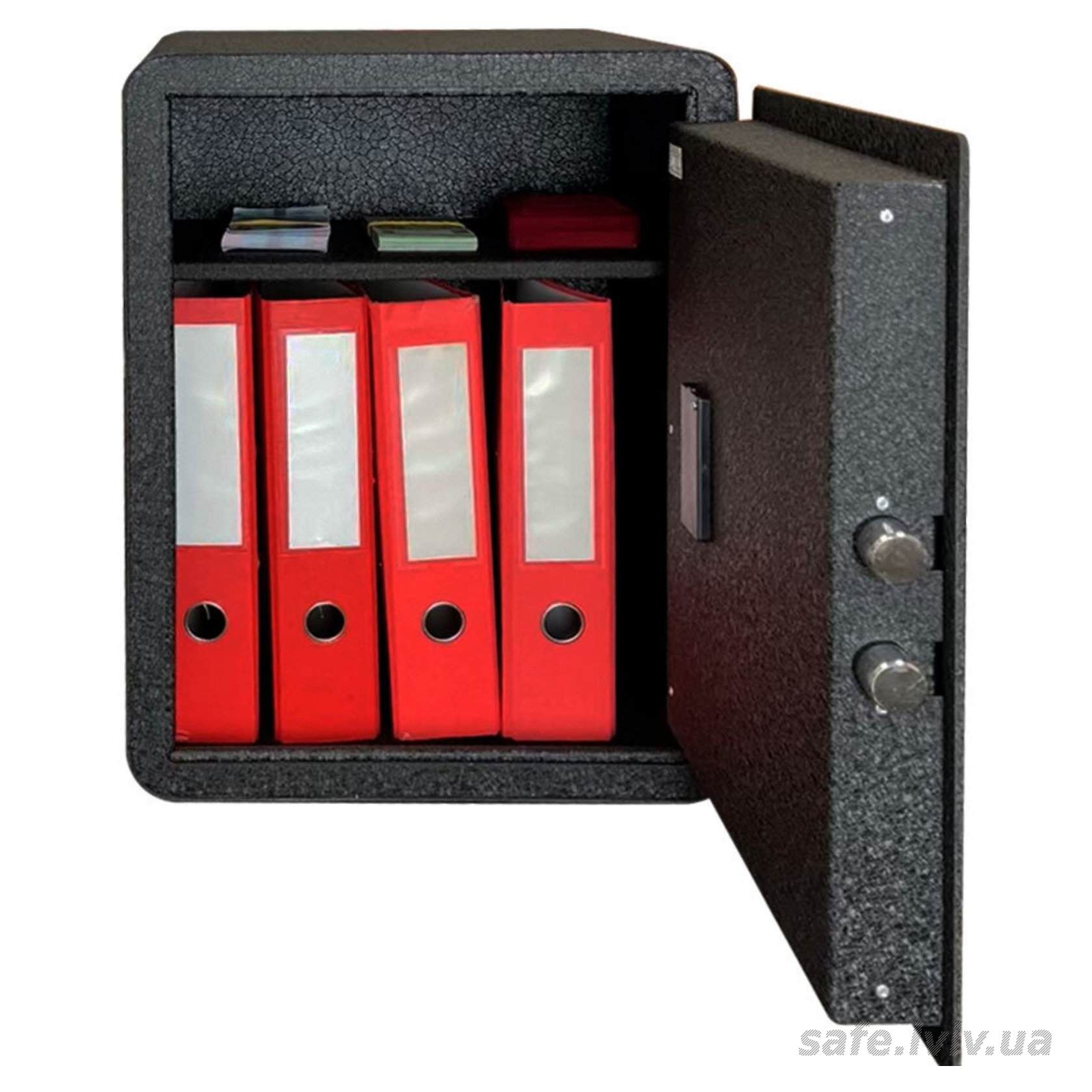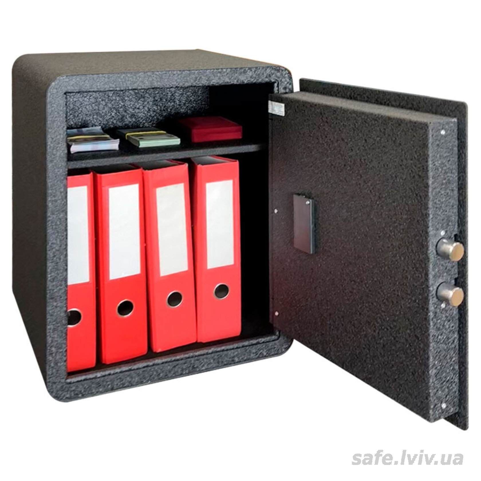 - Сейф вміщає: документи А4, папки А4.