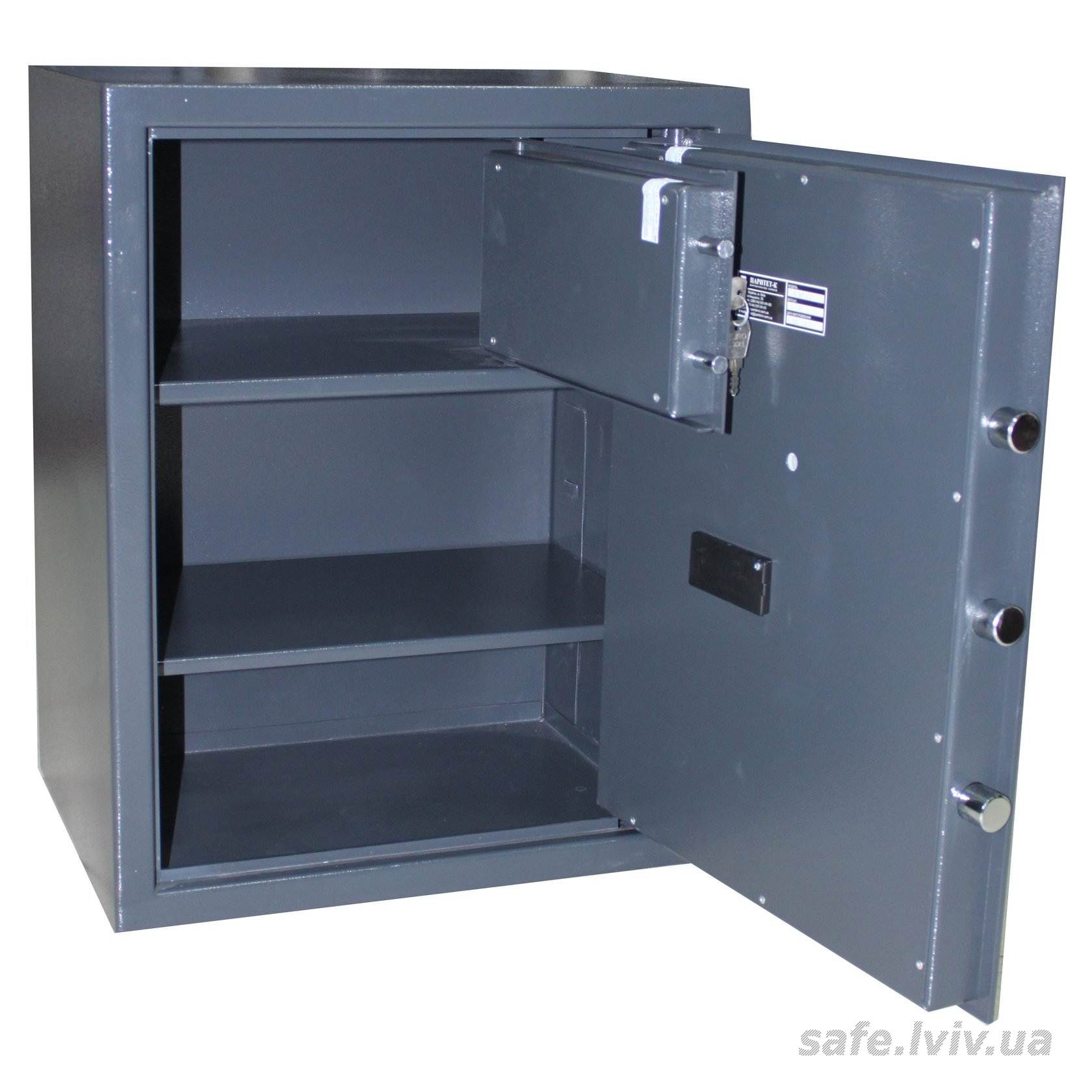 - Конструкція: корпус 2 мм (сталь), двері 5 мм (сталь); ригельна система одностороння, 3 ригелі Ø 25 мм.