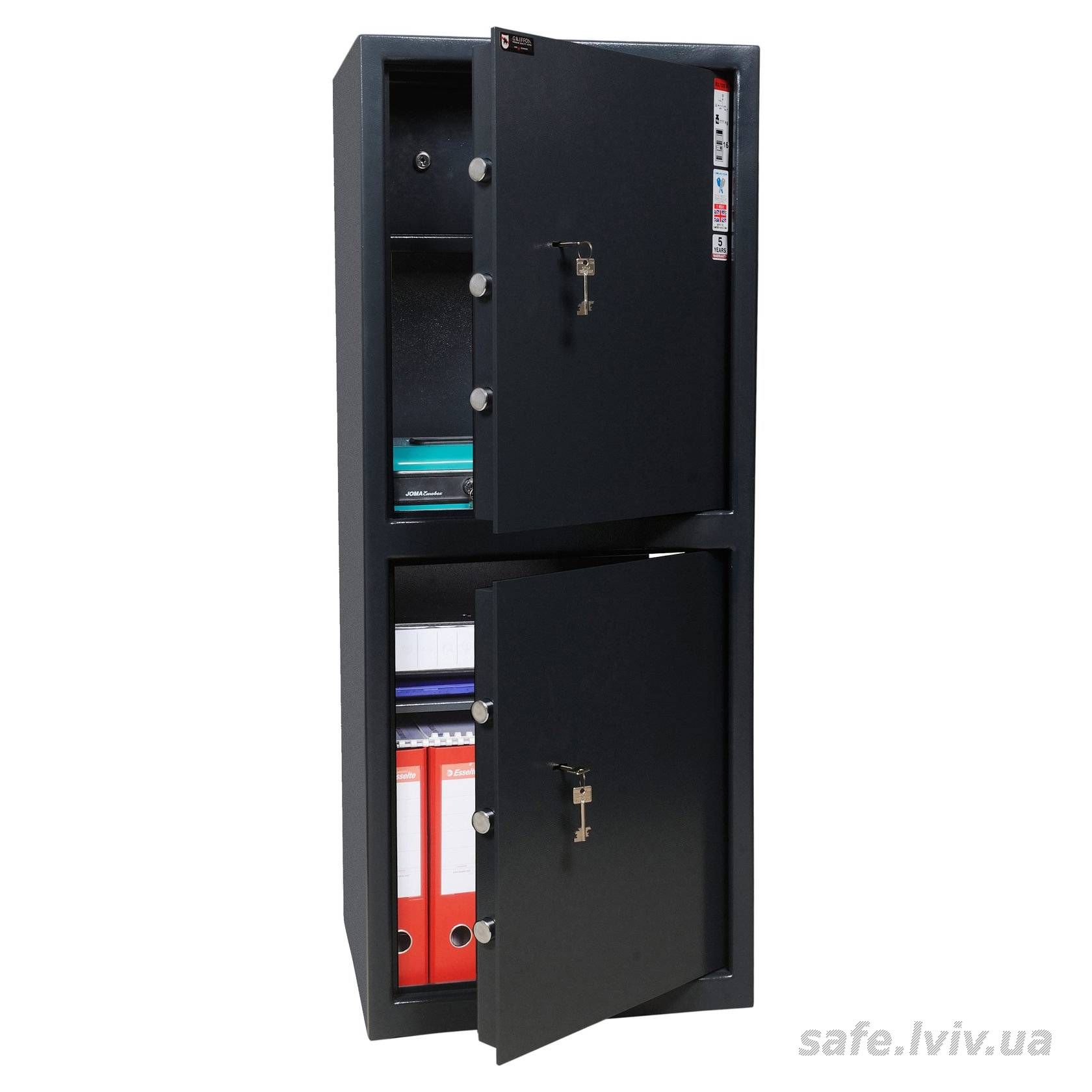 - Конструкція: корпус 2 мм (сталь), двері 5 мм (сталь); ригельна система одностороння, 3 ригелі Ø 25 мм.
