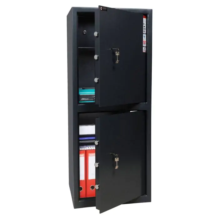 Griffon R2.120.K це сейф офісний, для документів, за допомогою якого можна захистити документи А4, ноутбук, папки А4 у квартирі, будинку чи офісі. Конструкція корпусу 2 мм (сталь), дверей 5 мм (сталь), ригельна система одностороння, 3 ригелі Ø 25 мм та замок - ключовий STUV (Німеччина) VdS Class 1 (A) забезпечують базовий рівень захисту. Сейф вміщає документи А4, ноутбук, папки А4. Передбачена можливість анкерування до підлоги чи стіни.