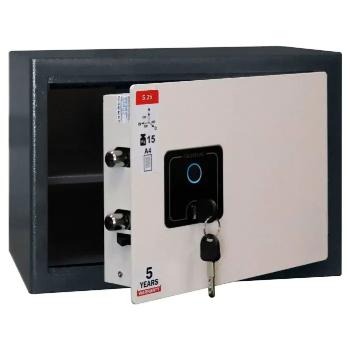 Griffon S.25.FP це сейф меблевий, для дому, призначений для надійного зберігання таких цінностей, як 2 пістолети, документи А4 у квартирі чи установі. Конструкція корпусу 3 мм (сталь), дверей 3 мм (сталь), ригельна система одностороння, 2 ригелі Ø 25 мм. Доступні виконання замка - біометричний GRIFFON.FP.LIGHT.