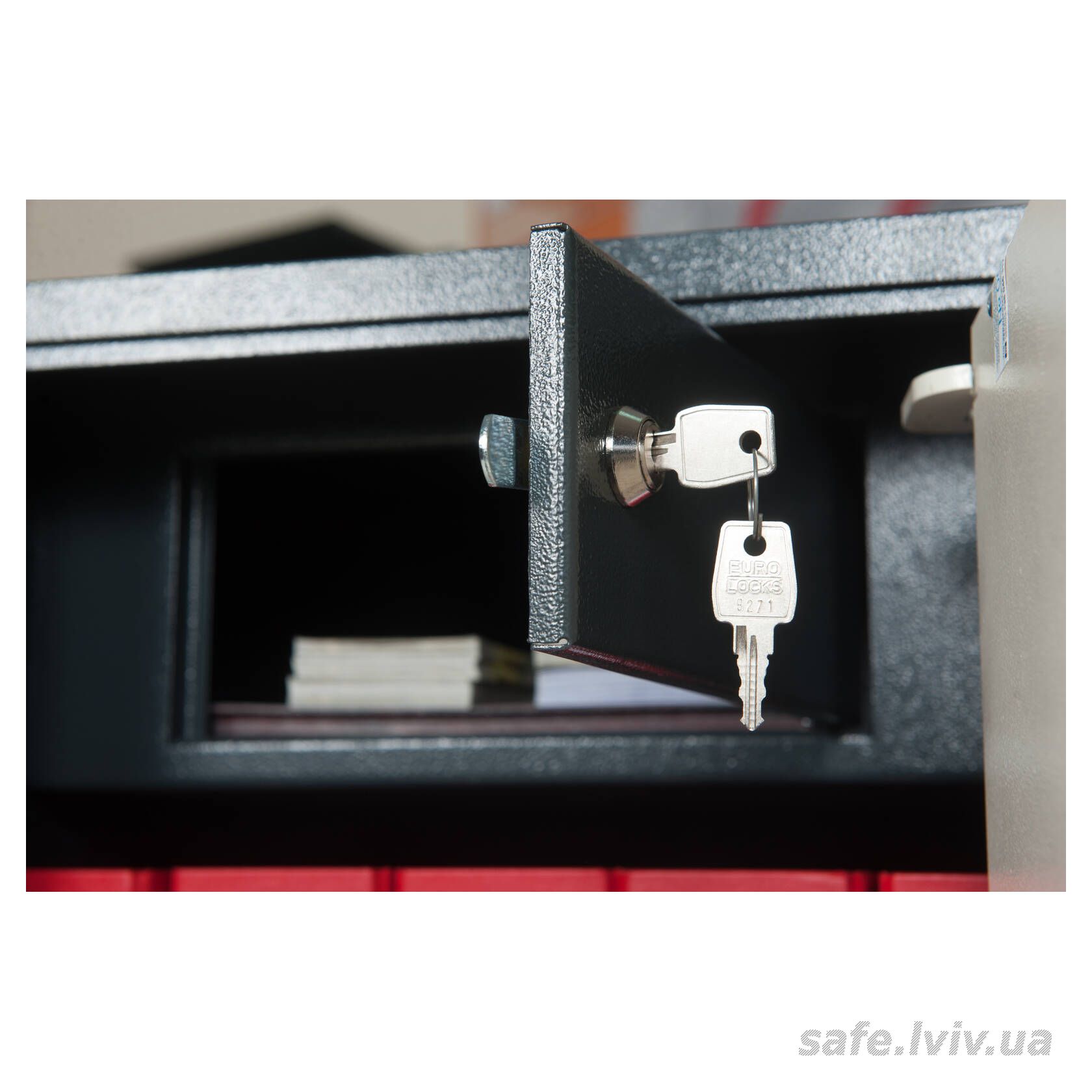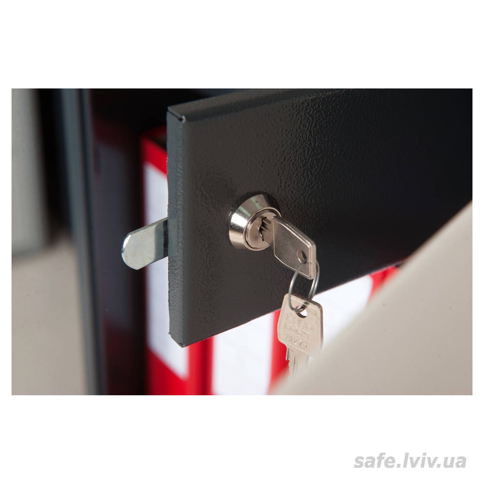 - Конструкція: корпус 3 мм (сталь), двері 3 мм (сталь); ригельна система одностороння, 2 ригелі Ø 25 мм.
