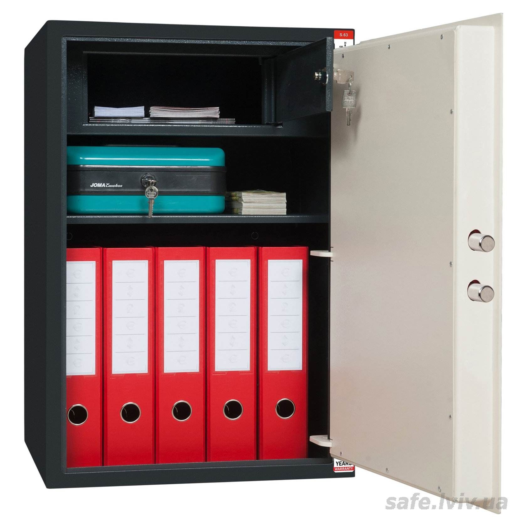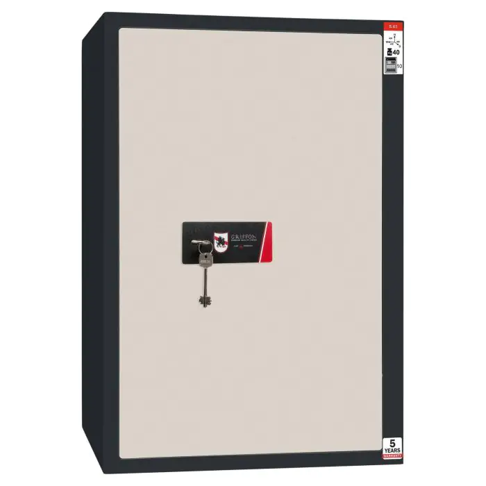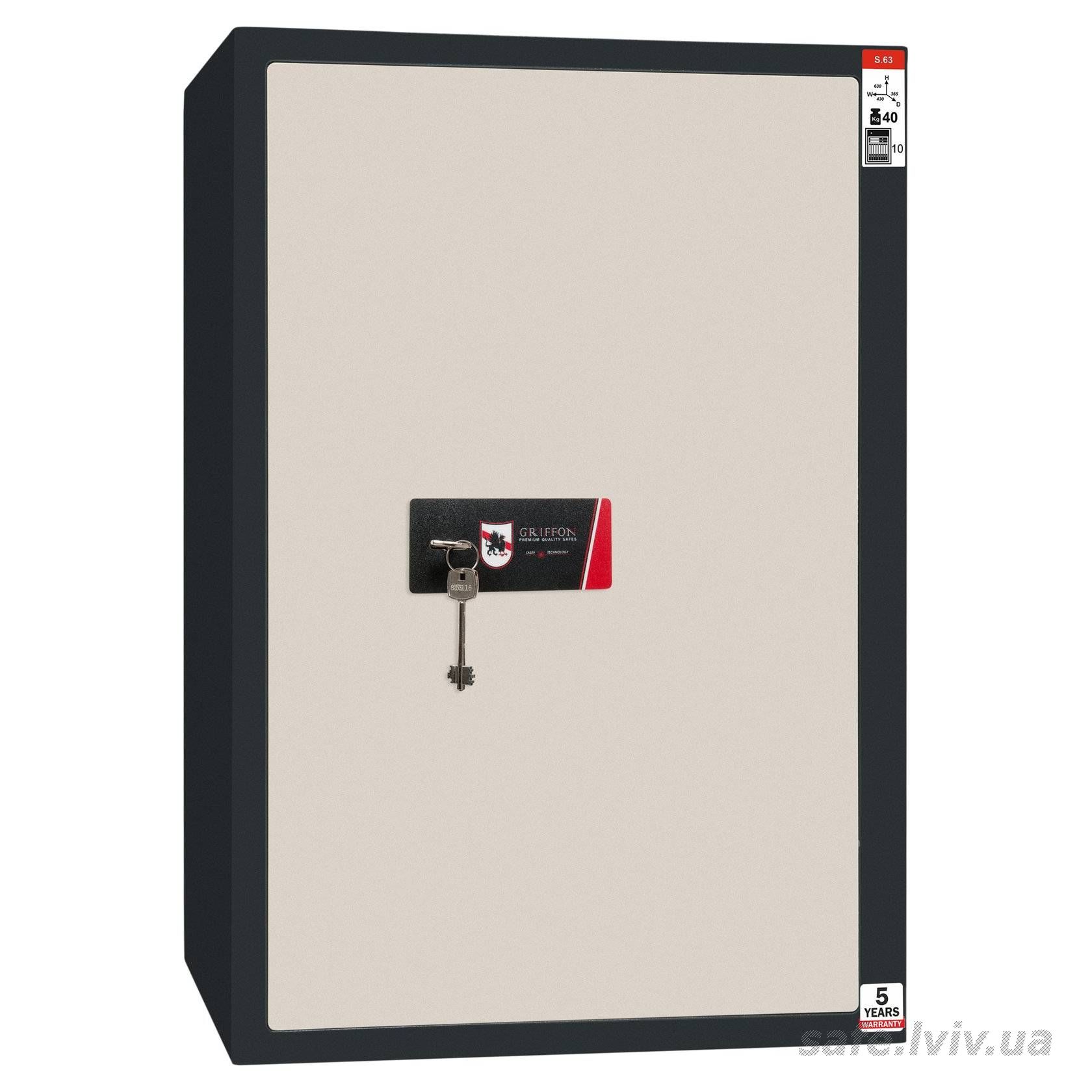 Griffon S.63.K це сейф офісний, для документів, призначений для надійного зберігання таких цінностей, як документи А4, ноутбук, папки А4 у квартирі чи установі. Конструкція корпусу 3 мм (сталь), дверей 3 мм (сталь), ригельна система одностороння, 2 ригелі Ø 16 мм. Доступні виконання замка - ключовий SK 106/4 (Україна).