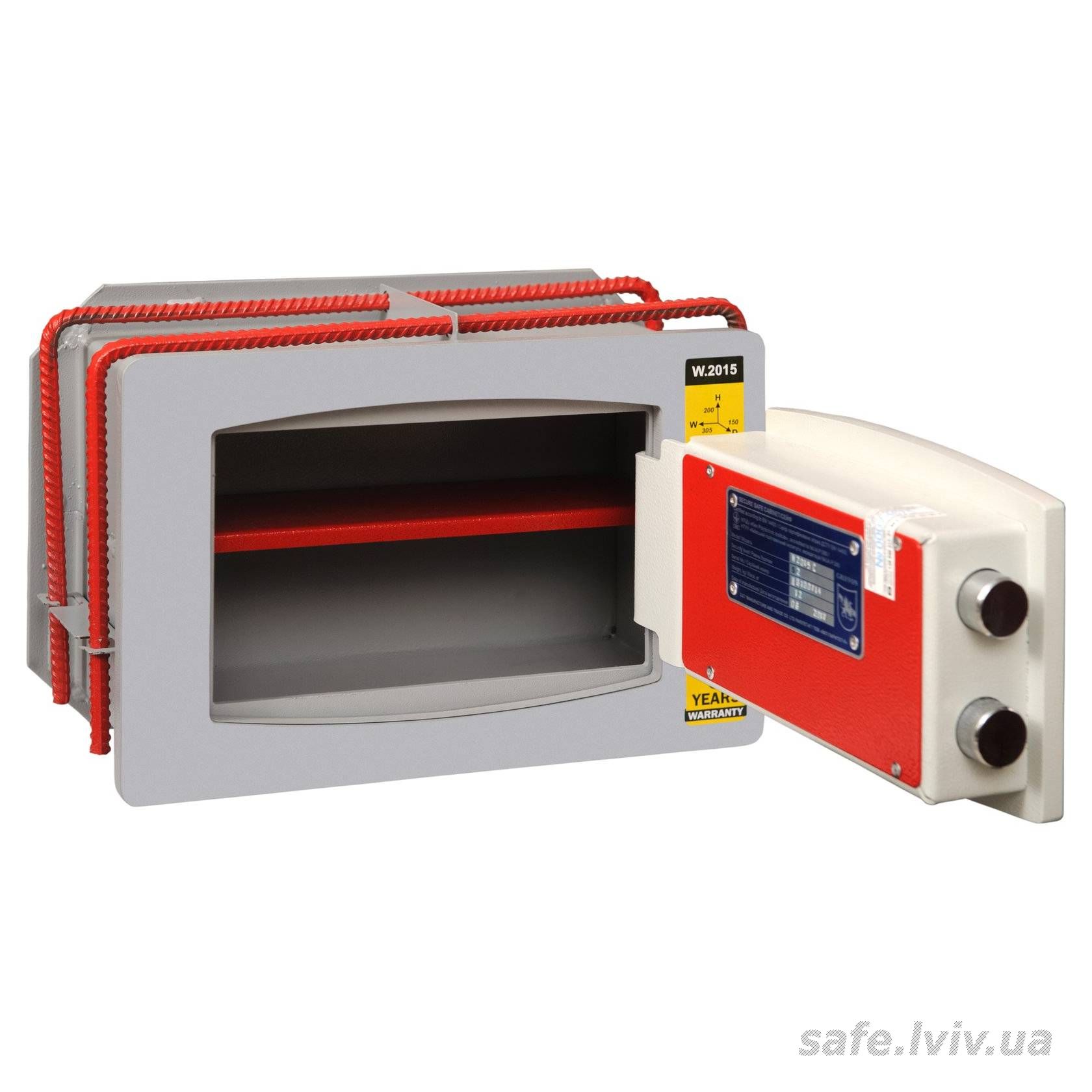 - Конструкція: корпус 2 мм (сталь), двері 10 мм (сталь); ригельна система одностороння, 2 ригелі Ø 25 мм.