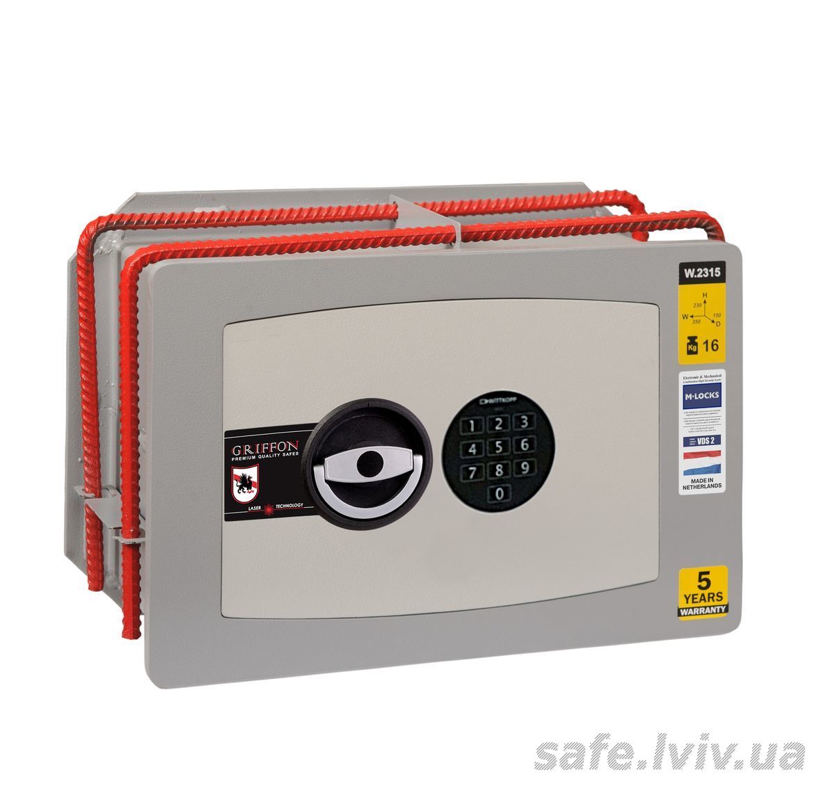 Griffon W.2315.E WKP це вбудований у стіну сейф клас S2 за EN 14450, призначений для захисту грошей, документів і коштовностей у квартирі, будинку чи офісі. Конструкція корпусу і дверей, ригельна система та сертифіковані замки забезпечують надійний рівень захисту від злому. Рекомендовані ліміти зберігання - до до 2.4 млн грн мінімальних зарплат.
