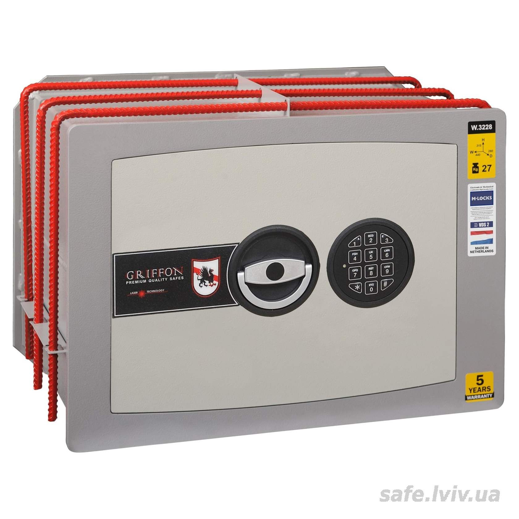 Griffon W.3228.E це вбудований у стіну сейф клас S2 за EN 14450, призначений для захисту грошей, документів і коштовностей у квартирі, будинку чи офісі. Конструкція корпусу і дверей, ригельна система та сертифіковані замки забезпечують надійний рівень захисту від злому. Рекомендовані ліміти зберігання - до до 2.4 млн грн мінімальних зарплат.