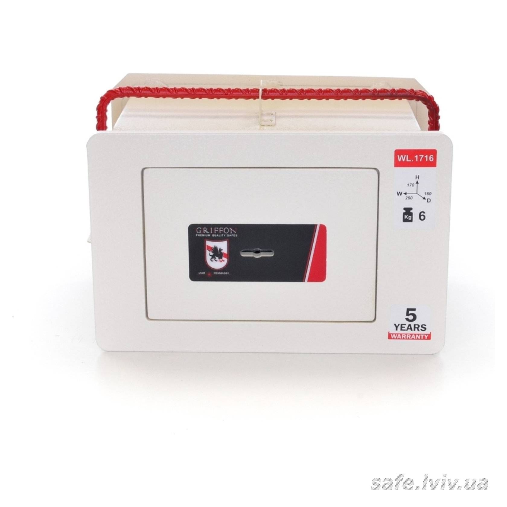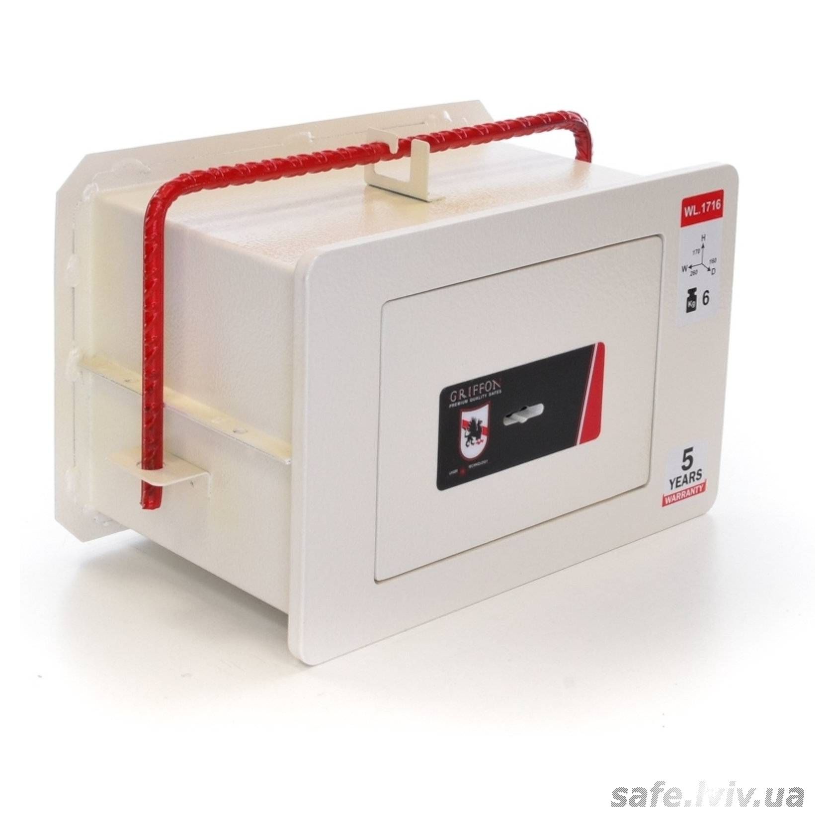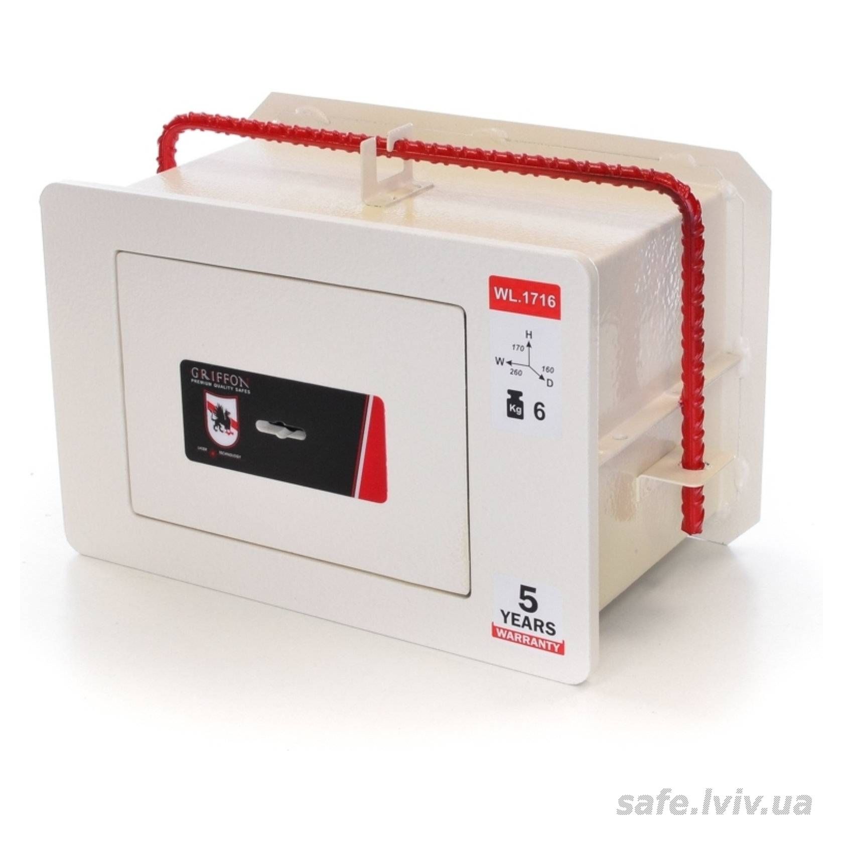 Griffon WL.1716.K Cream це бюджетний сейф стінний, сейф вбудовуваний, призначений для захисту документів і невеликих сум грошей. Базовий рівень захисту забезпечують конструкція корпусу 2 мм (сталь) і дверей 8 мм (сталь), ригельна система одностороння, 2 ригелі Ø 16 мм та замок - ключовий SK 106/4 (Україна).