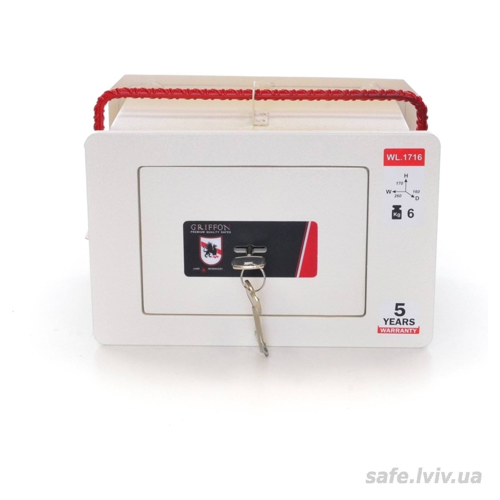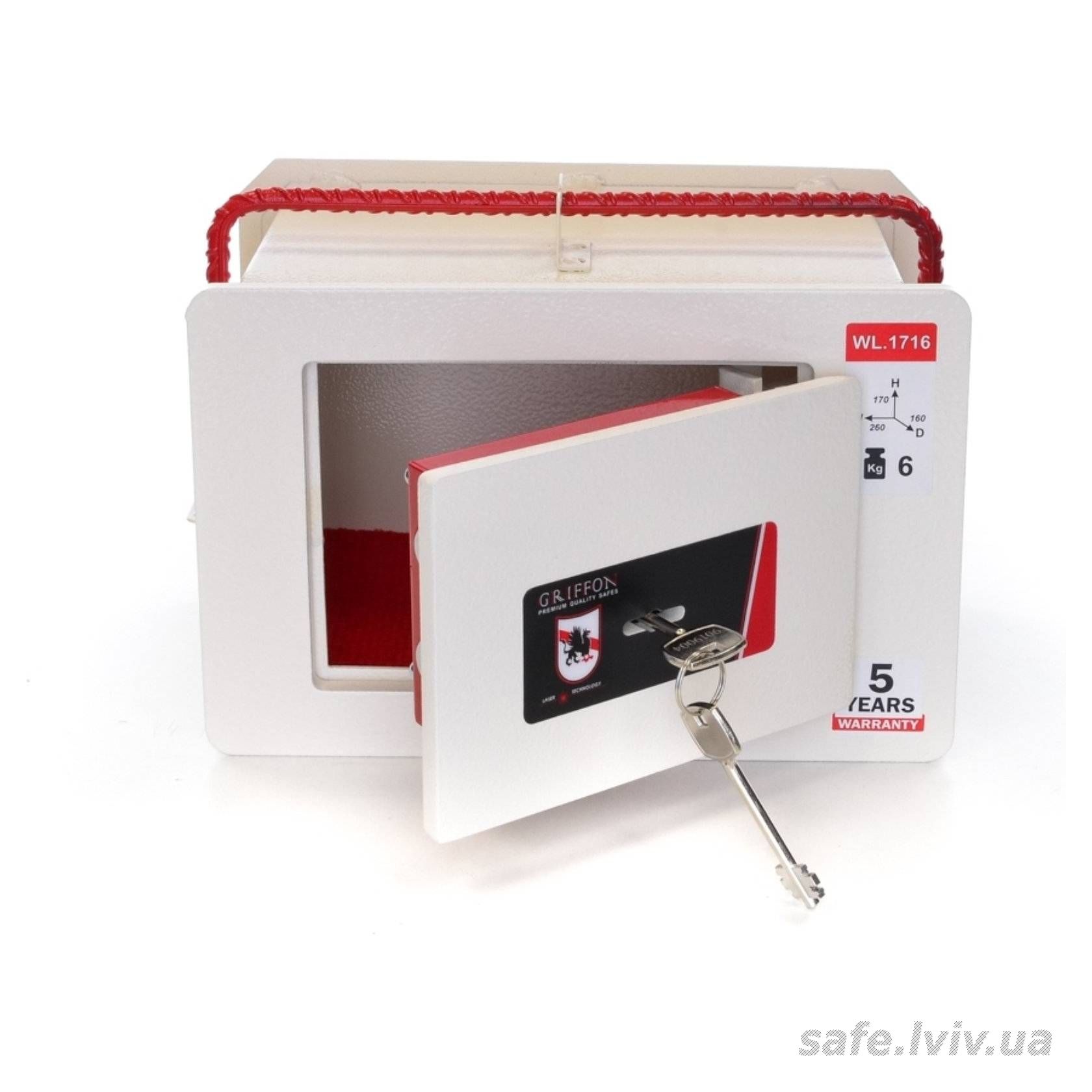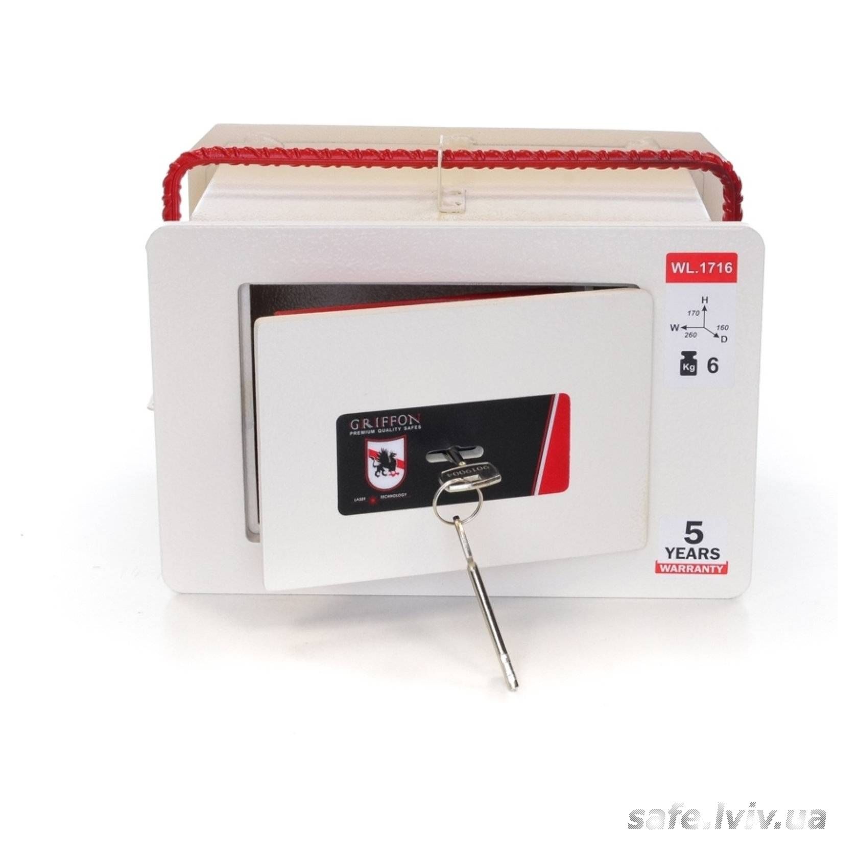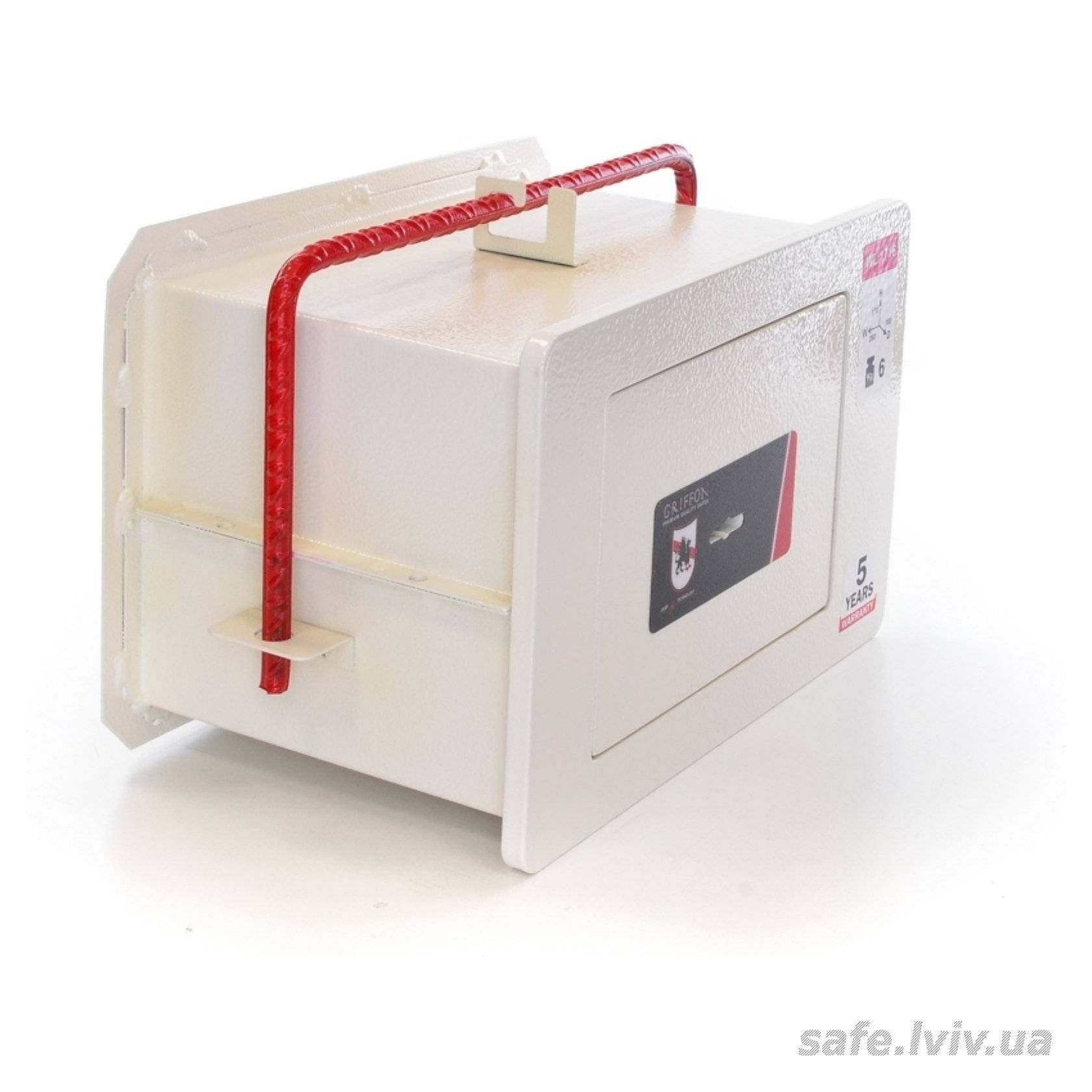 Griffon WL.1716.K Cream це бюджетний сейф стінний, сейф вбудовуваний, призначений для захисту документів і невеликих сум грошей. Базовий рівень захисту забезпечують конструкція корпусу 2 мм (сталь) і дверей 8 мм (сталь), ригельна система одностороння, 2 ригелі Ø 16 мм та замок - ключовий SK 106/4 (Україна).