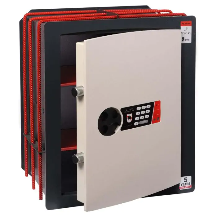 Griffon WL.5028.E це бюджетний сейф стінний, сейф вбудовуваний, призначений для захисту документів і невеликих сум грошей. Базовий рівень захисту забезпечують конструкція корпусу 2 мм (сталь) і дверей 8 мм (сталь), ригельна система одностороння, 2 ригелі Ø 25 мм та замок - електронний Griffon 2.0 (Україна).